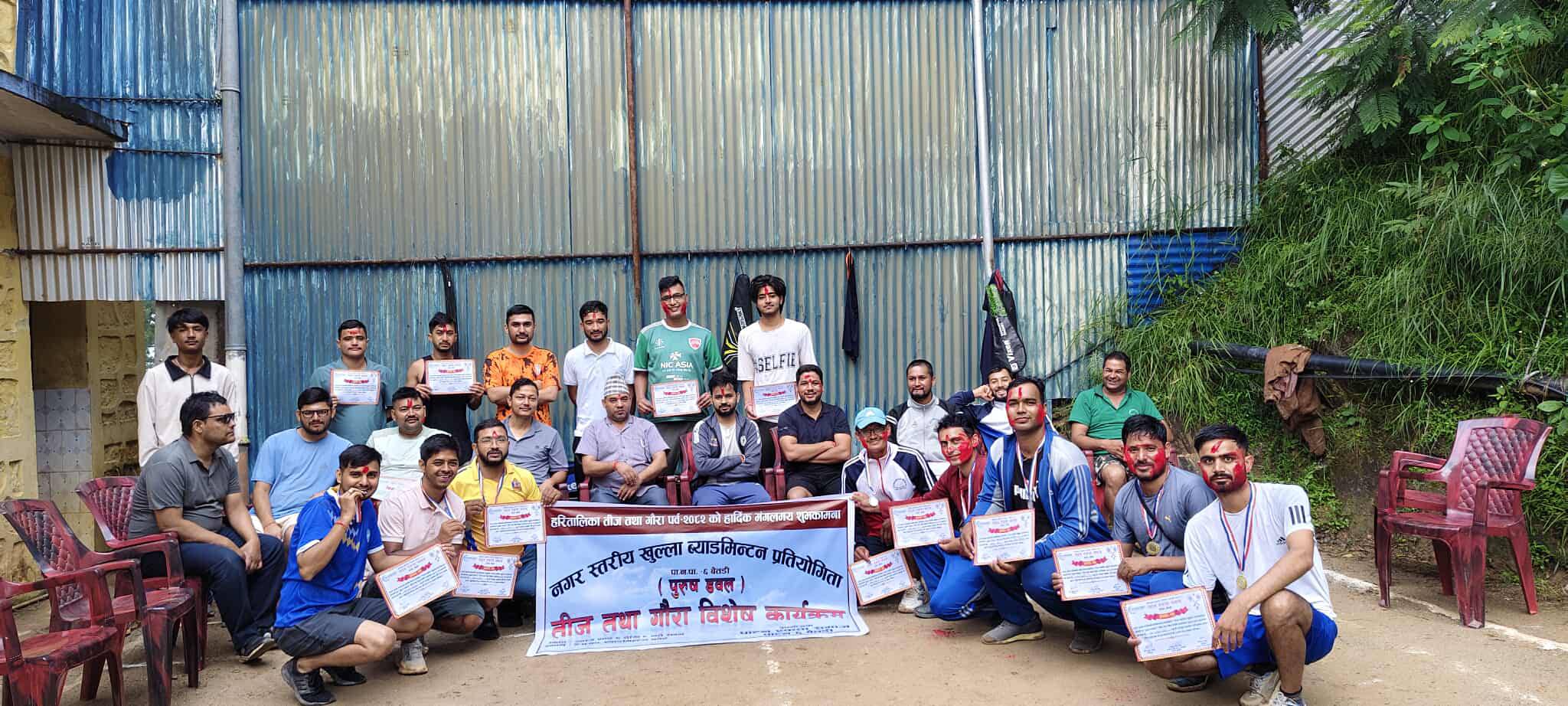 बैतडी : बैतडीको पाटनमा सम्पन्न नगरस्तरीय ब्याडमिन्टन प्रतियोगिताको उपाधि दिपक भण्डारी र तेज चन्दको टिमले जितेका छन्।